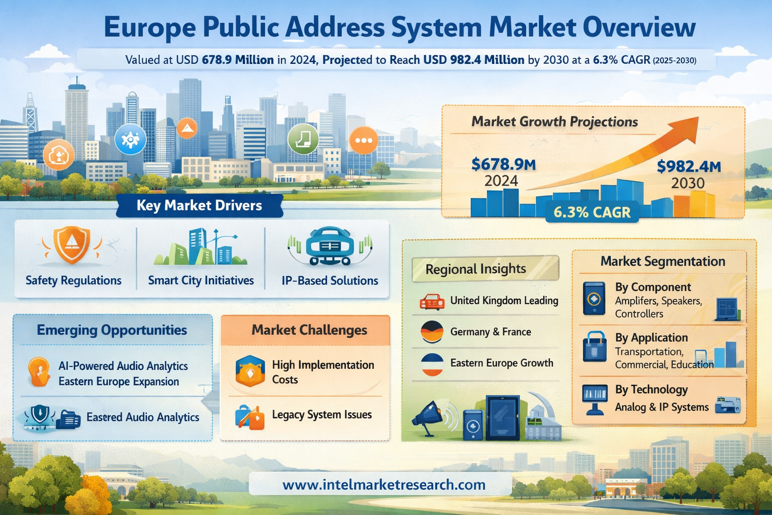 According to a new report from Intel Market Research, the Europe public address system market was valued at USD 678.9 million in 2024 and is projected to reach USD 982.4 million by 2030, growing at a CAGR of 6.3% during the forecast period (2025-2030). This growth is fueled by stringent safety regulations, infrastructure modernization across European cities, and the rapid adoption of IP-based networked solutions in commercial and public spaces.