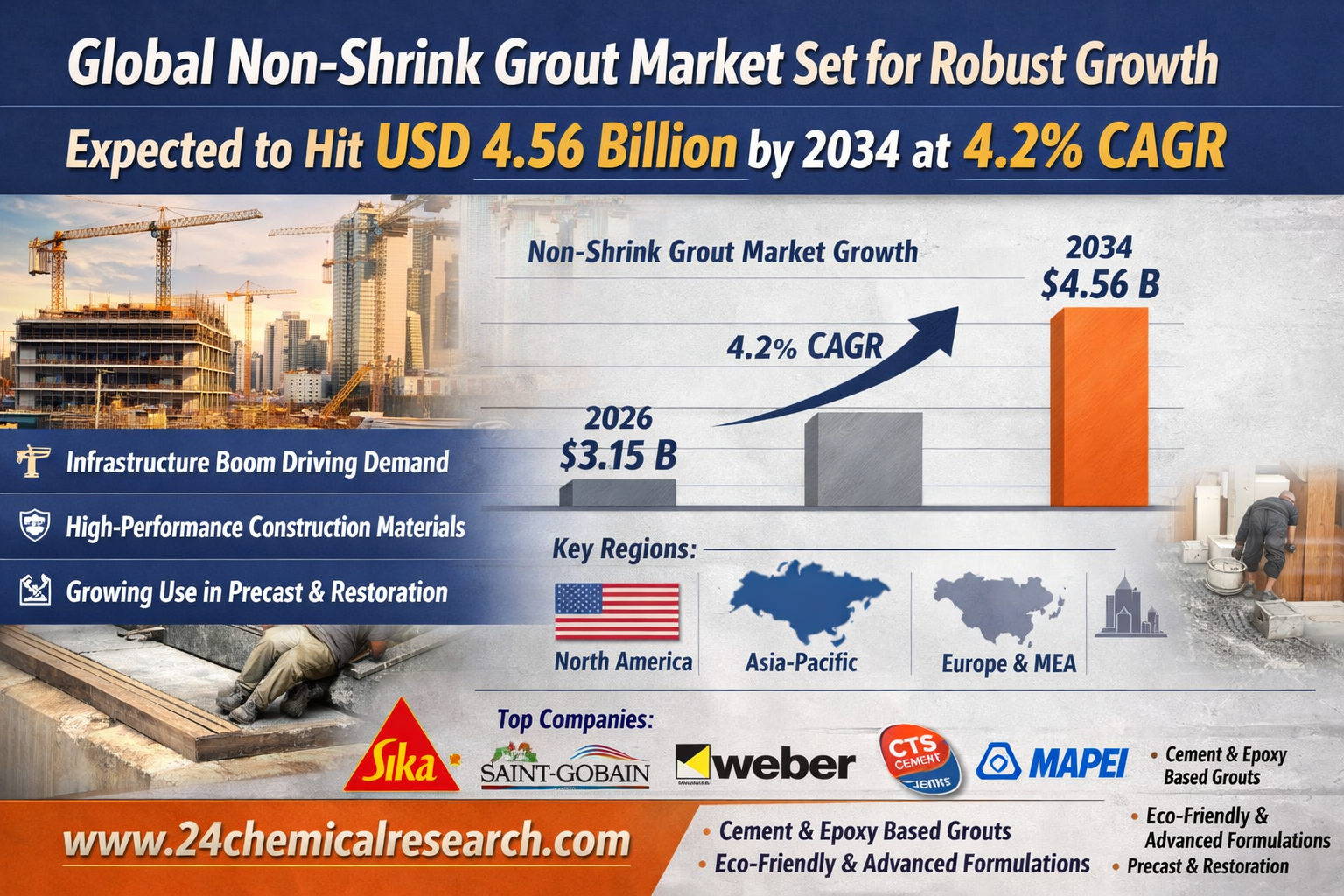 Global Non-Shrink Grout Market Set for Robust Growth, Expected to Hit USD 4.56 Billion by 2034 at 4.2% CAGR