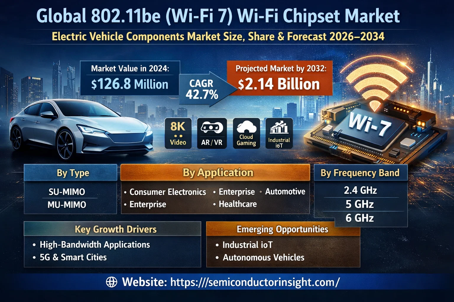 Global 802.11be (Wi-Fi 7) Wi-Fi Chipset Market, valued at USD 126.8 million in 2024, is poised for explosive growth, projected to reach USD 2.14 billion by 2032. This expansion, representing a remarkable compound annual growth rate (CAGR) of 42.7% during the forecast period 2025-2032, is detailed in a comprehensive new report published by Semiconductor Insight. The study underscores the transformative potential of Wi-Fi 7 technology in revolutionizing wireless connectivity across consumer electronics, enterprise networks, and industrial IoT applications.