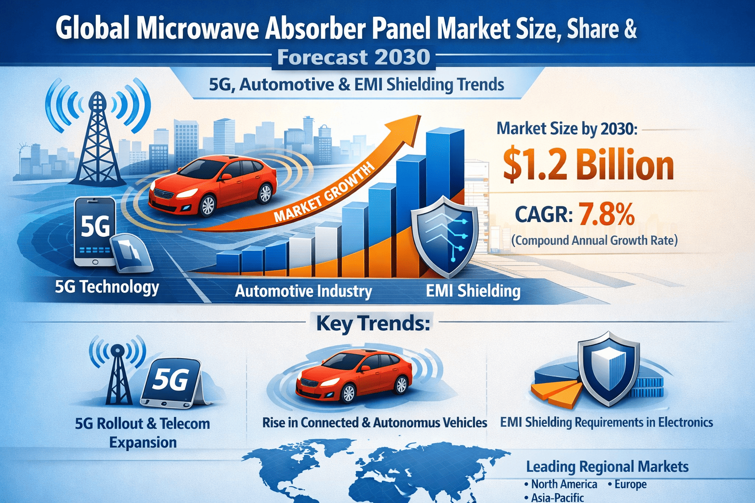 Global Microwave Absorber Panel Market Size, Share & Forecast 2030 | 5G, Automotive & EMI Shielding Trends