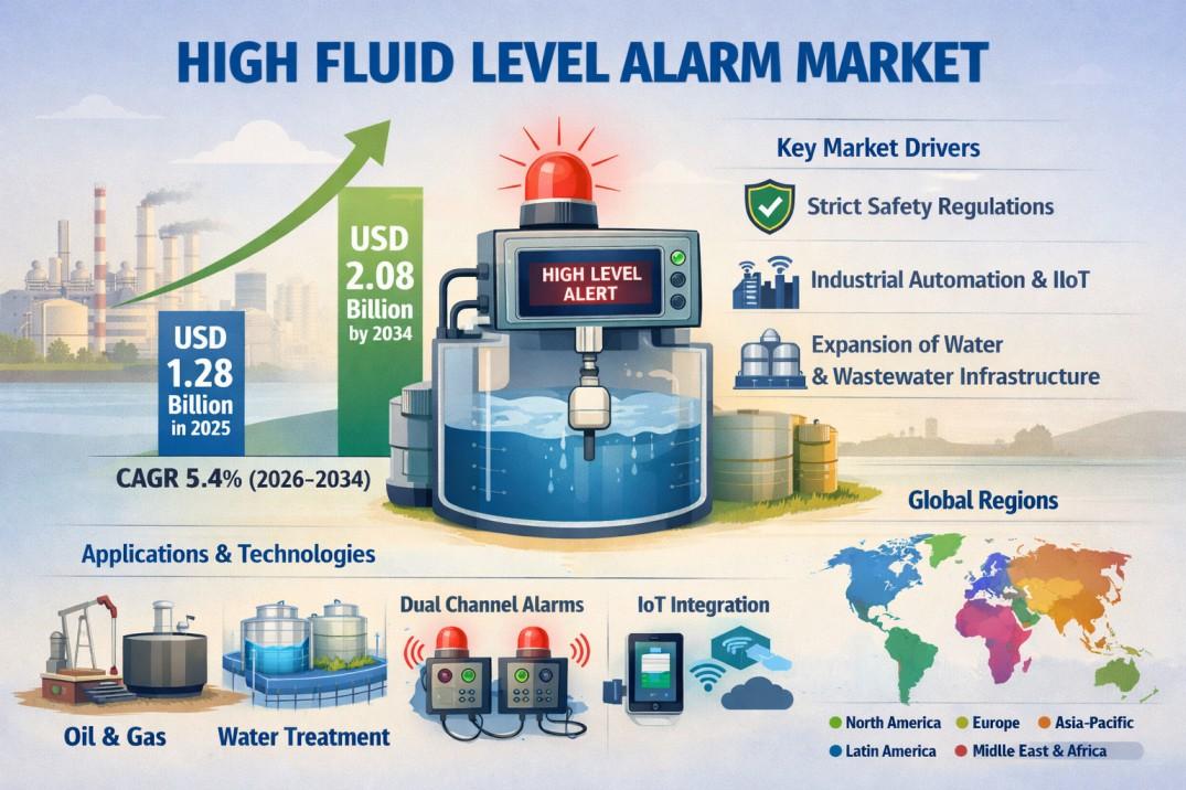 High Fluid Level Alarm Market Outlook 2026–2034: Expanding at 5.4% CAGR to USD 2.08 Billion