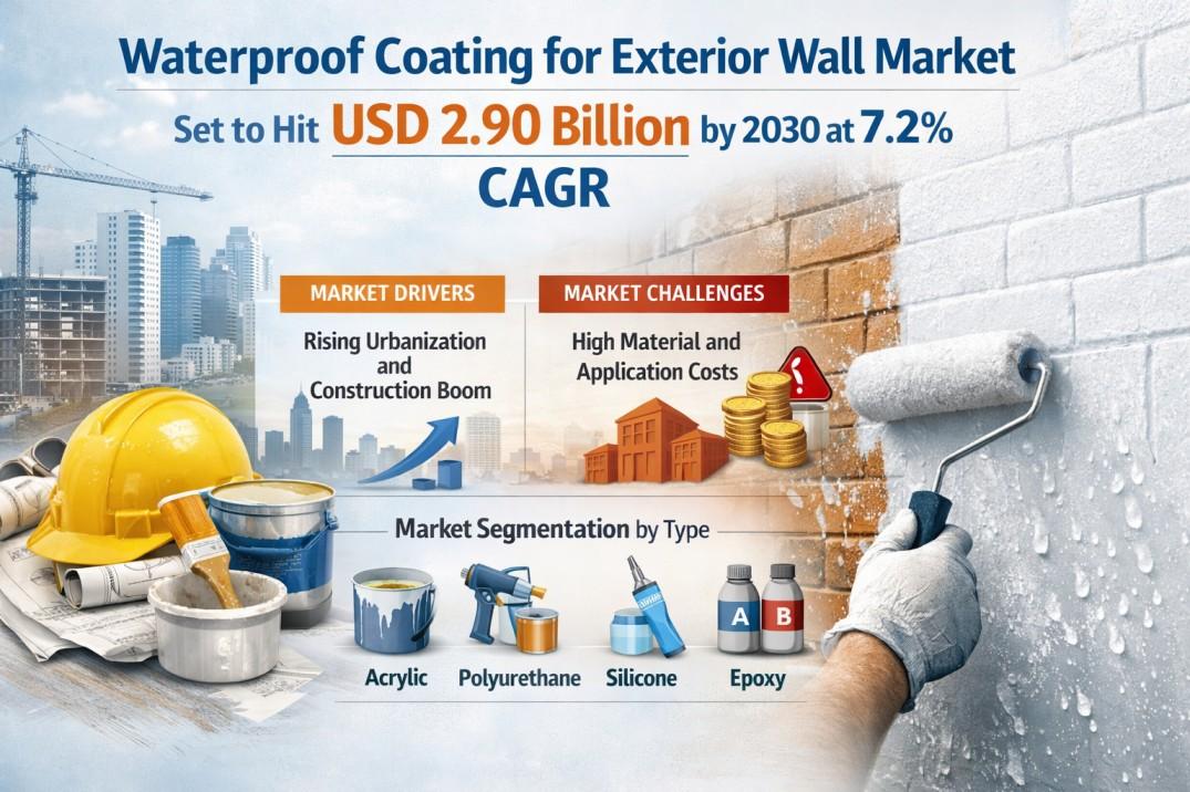 Waterproof Coating for Exterior Wall Market Set to Hit USD 2.90 Billion by 2030 at 7.2% CAGR