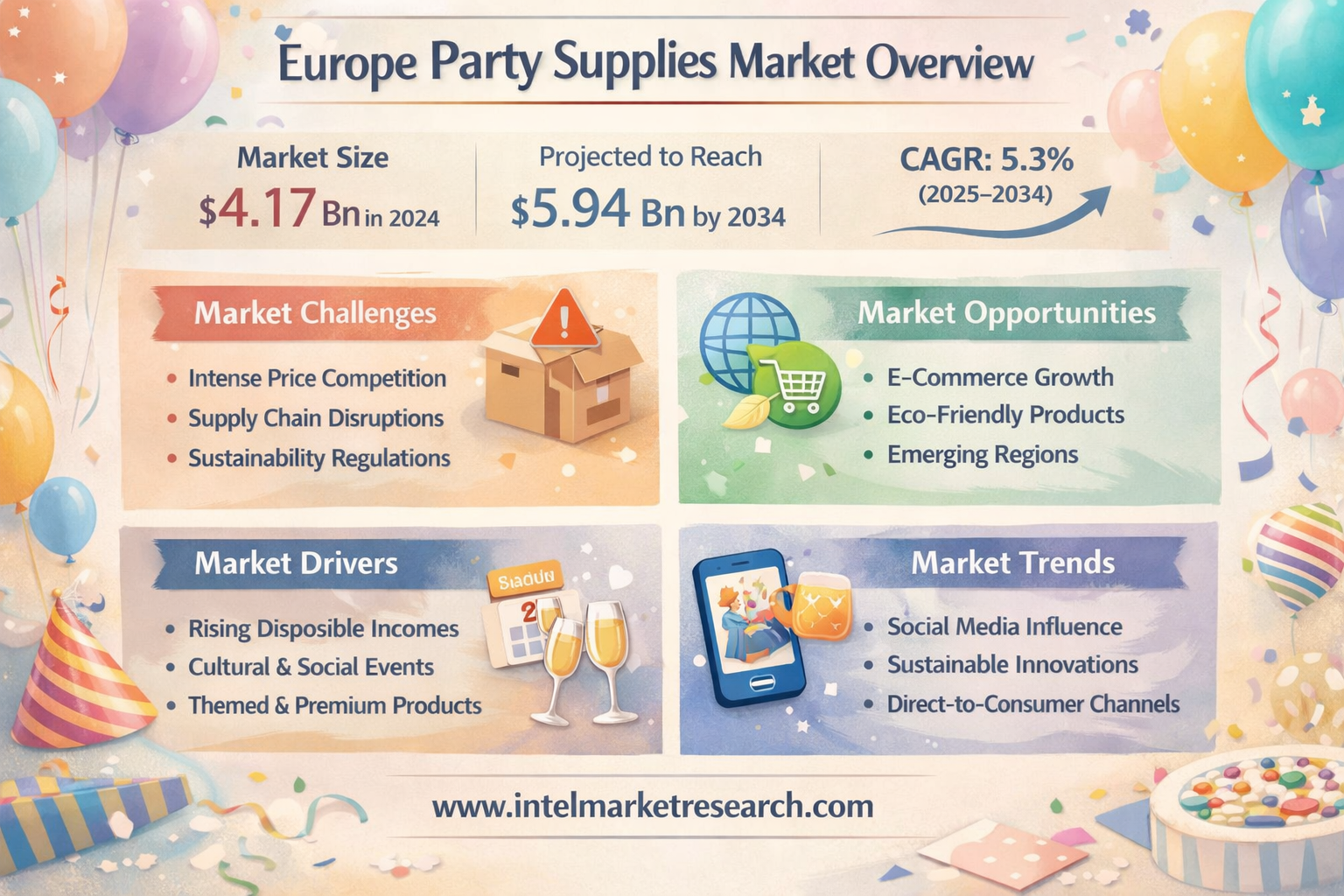 According to a new report from Intel Market Research, the Europe Party Supplies Market was valued at USD 4,171.2 million in 2024 and is projected to grow from USD 4,395.6 million in 2026 to USD 5,937.8 million by 2034, exhibiting a CAGR of 5.3% during the forecast period (2025–2034). This growth is propelled by increasing disposable incomes across key Western European economies, a strong cultural emphasis on social gatherings and festivals, and evolving consumer preferences for themed and eco-friendly options.