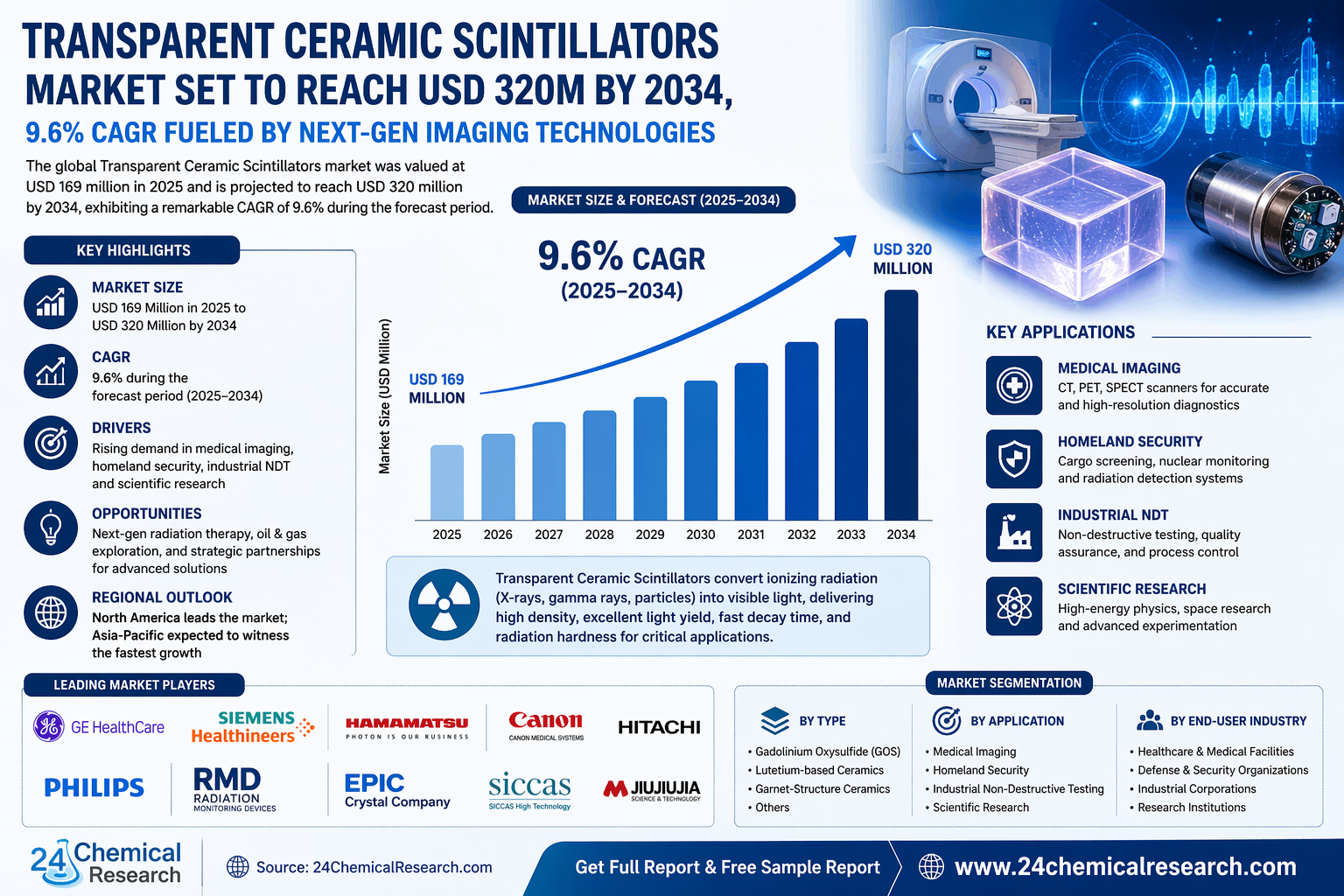 Transparent Ceramic Scintillators Market Set to Reach USD 320M by 2034, 9.6% CAGR Fueled by Next-Gen Imaging Technologies