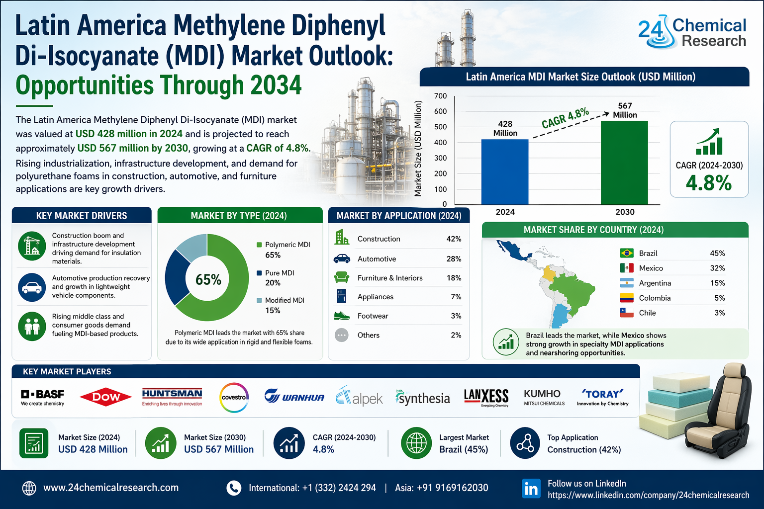 Get Full Report Here: https://www.24chemicalresearch.com/reports/286446/latin-america-methylene-diphenyl-diisocyanate-market-2025-2032-450