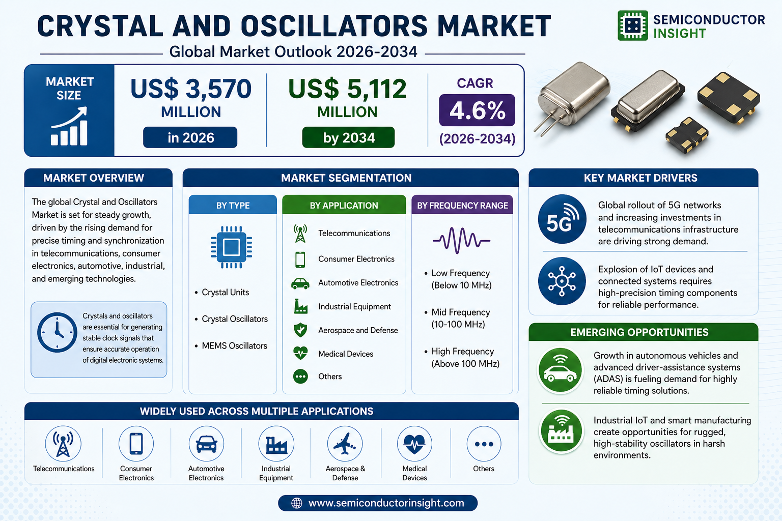 Crystal and Oscillators Market Advancing Steadily to 2034 at 4.0% CAGR with Rising IoT and 5G Adoption