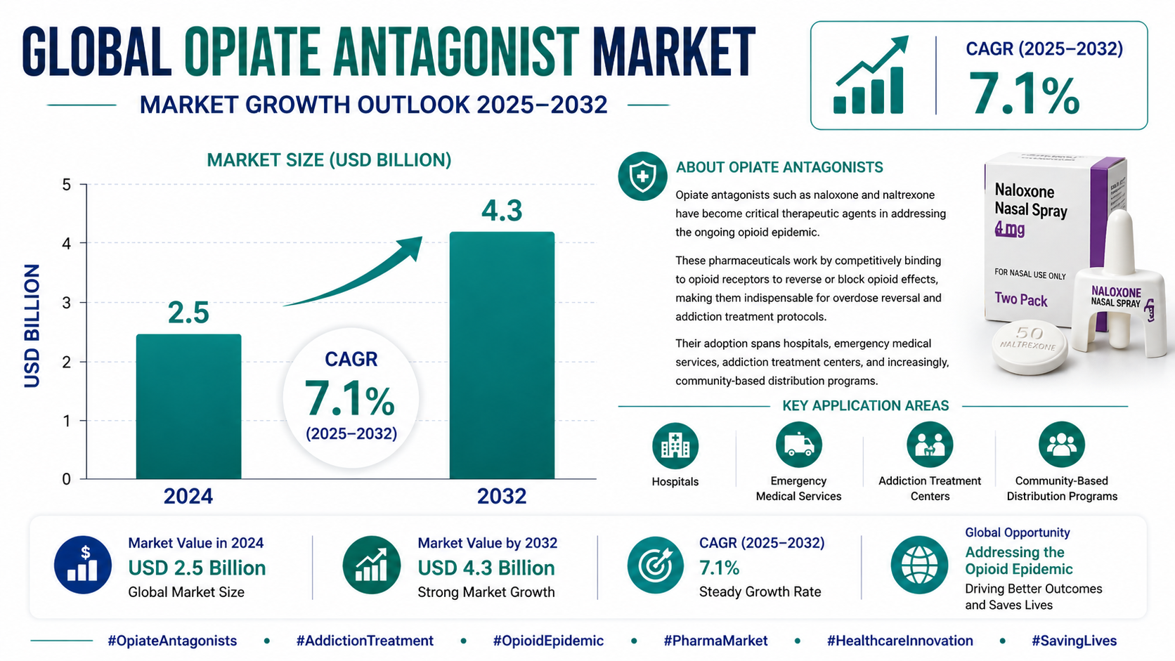Global opiate antagonist market growth outlook with 7.1% CAGR (2025–2032)