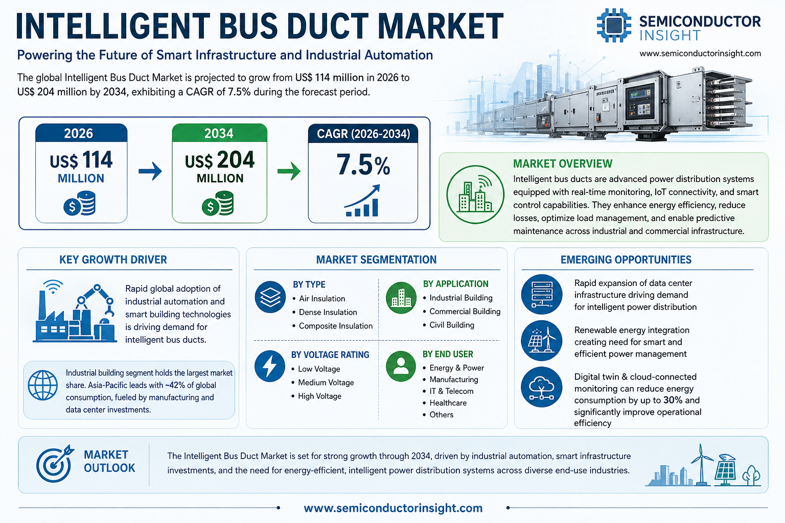 Intelligent Bus Duct Market CAGR 7.5% Forecast by 2034