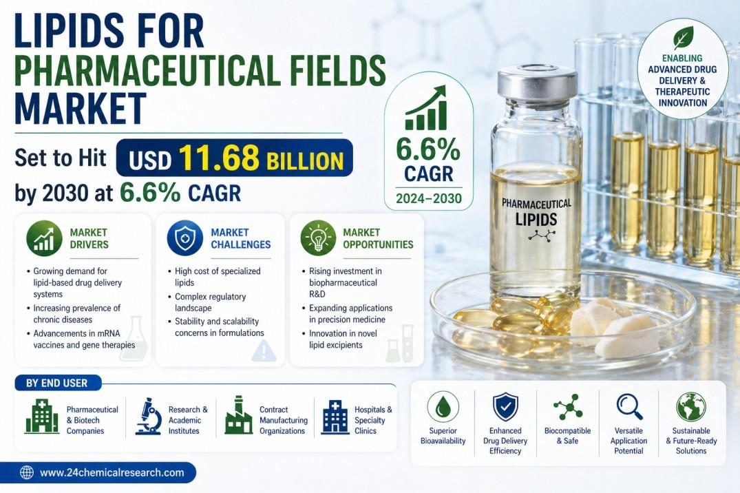 Lipids for Pharmaceutical Fields Market Set to Hit USD 11.68 Billion by 2030 at 6.6% CAGR